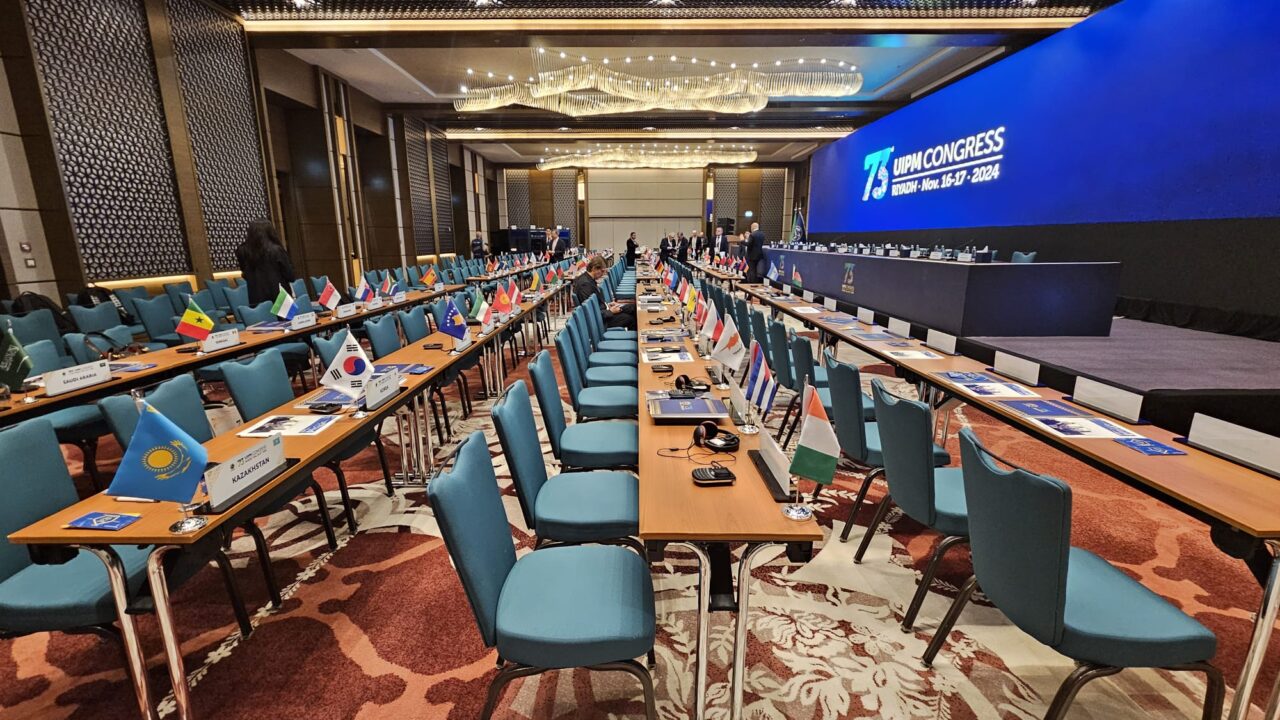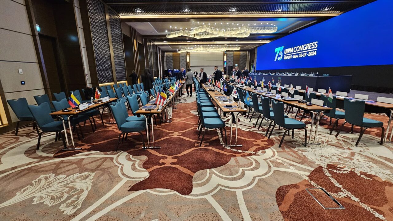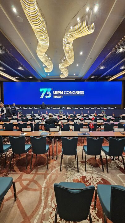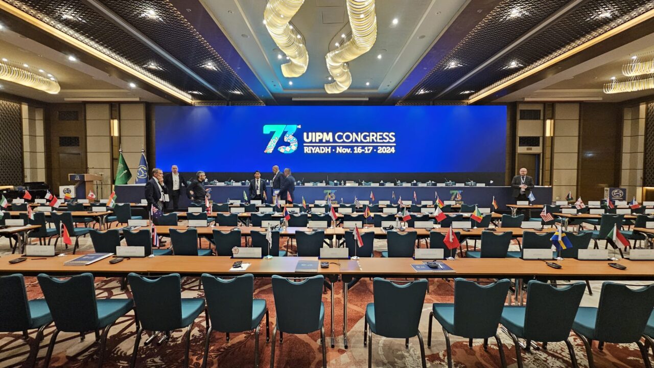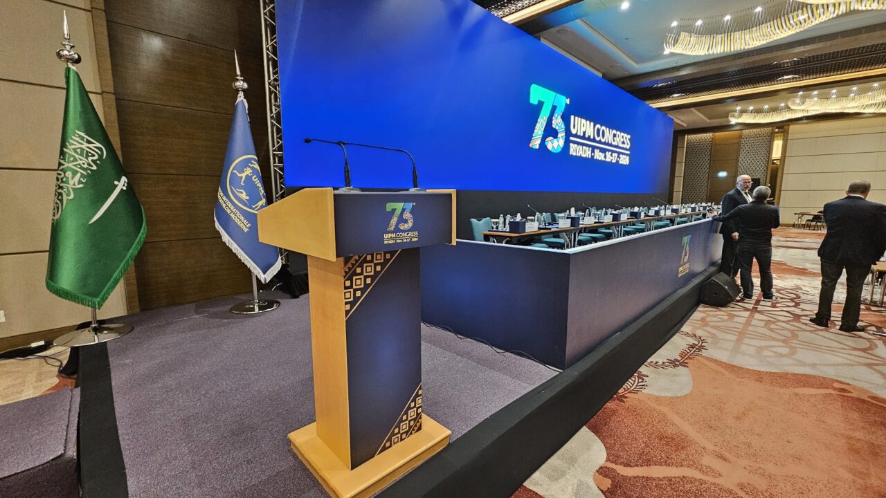 As the creative force behind the branding of the 73rd UIPM Congress, OIKO was entrusted with developing the event’s entire visual identity, starting from the design of the new Congress logo and extending to all visual elements. Our mission was to craft a concept that highlights the rich traditions and cultural heritage of Saudi Arabia. Drawing inspiration from intricate, handwoven carpets adorned with vibrant patterns and colors, we sought to reflect the essence of Saudi artistry. This approach allowed us to capture and reimagine the geometric beauty and timeless allure of Saudi art across all event materials.