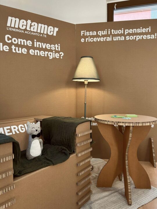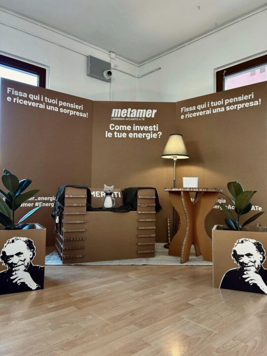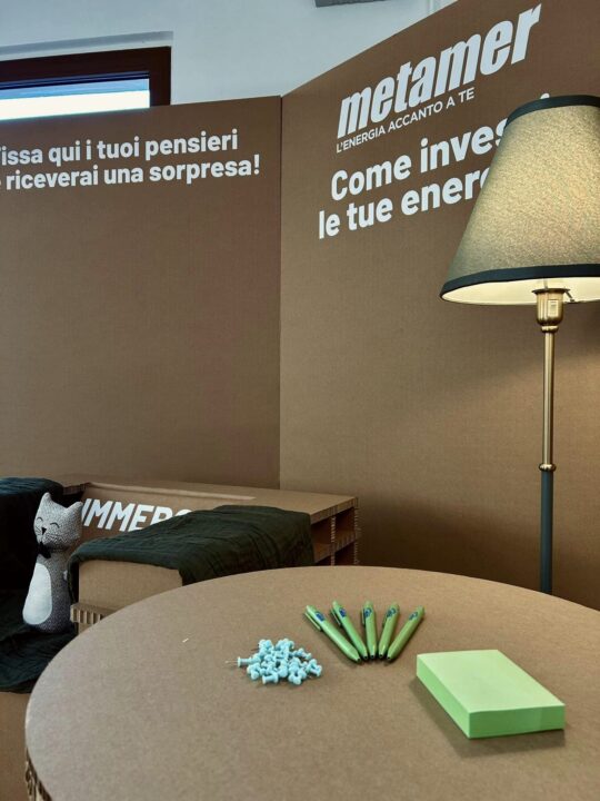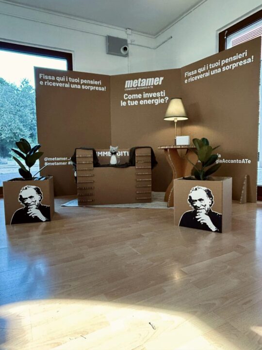 A team of 6 highly skilled technicians took care of the external setup for an evening welcome diner, with light motions, projections of logos and music in order to set the ambiance of the summit (attached the picture at night of Raffa and Giancarlo outside with the lights).