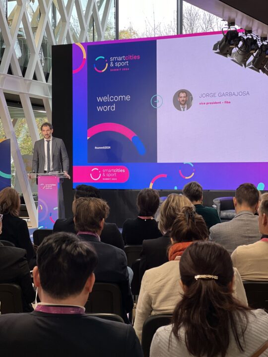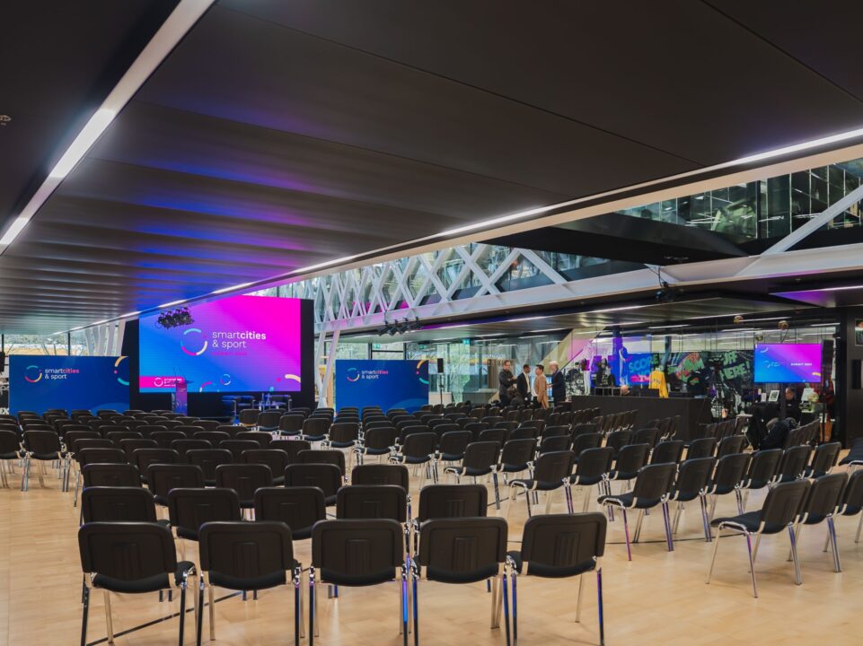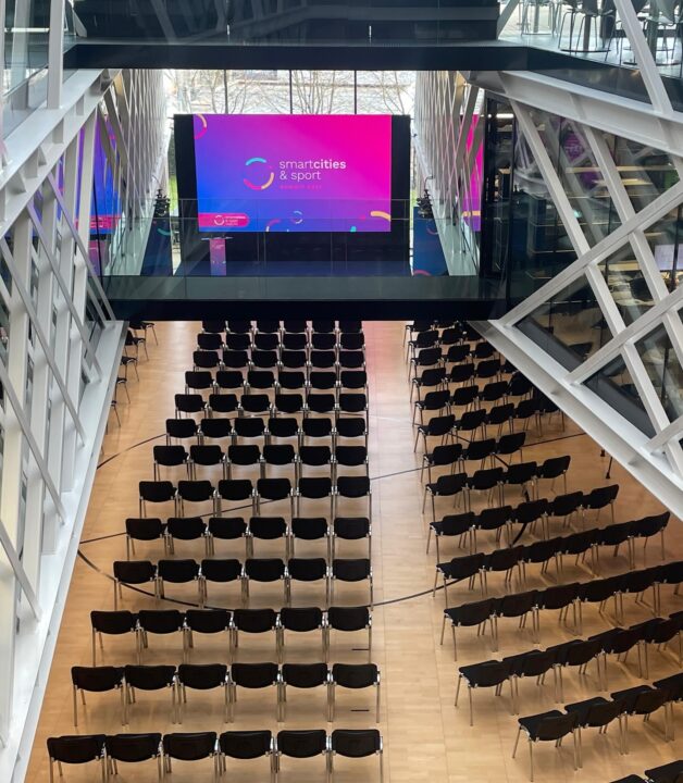 In addition to managing the event for the opening day of the summit, Oiko skillfully handled the branding adaptation of Smartcities & Sport, transforming the beautiful Hall of the FIBA headquarters into a visually striking space. Our setup featured an elegant lectern, an eye-catching backdrop stage, a scenographic backdrop, promotional roll-ups, a prominently displayed carved logo, and all the LED graphics, designed to deliver an integrated and dynamic visual experience.